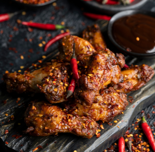 Savourez notre poulet pimenté, délicieusement doré et relevé juste comme il faut.
